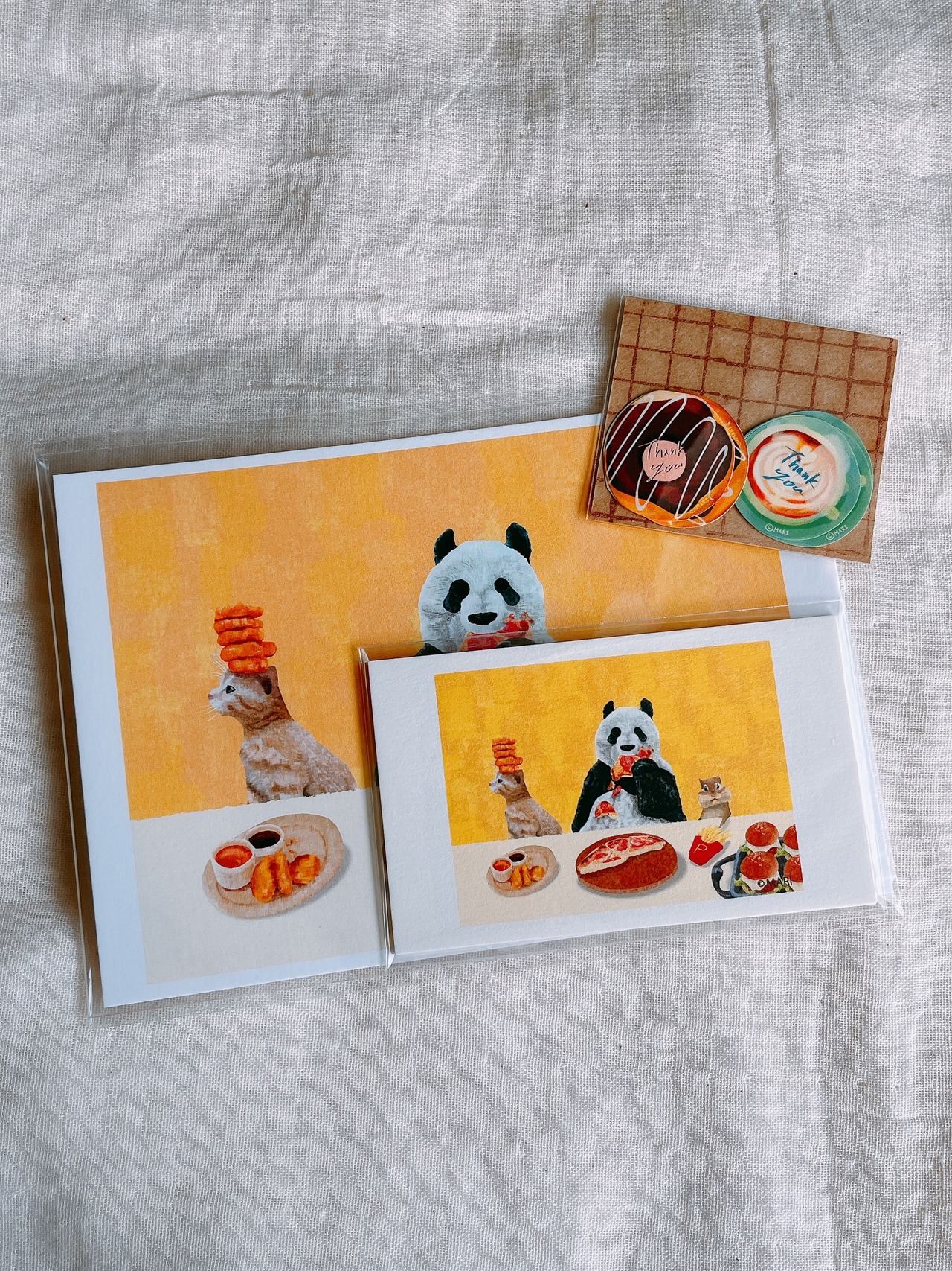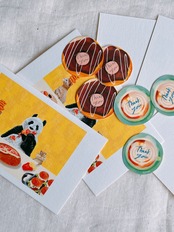 企画展で制作した作品、「それぞれ」のポストカード、メッセージカード、サンキューシールの数量限定セット商品です。